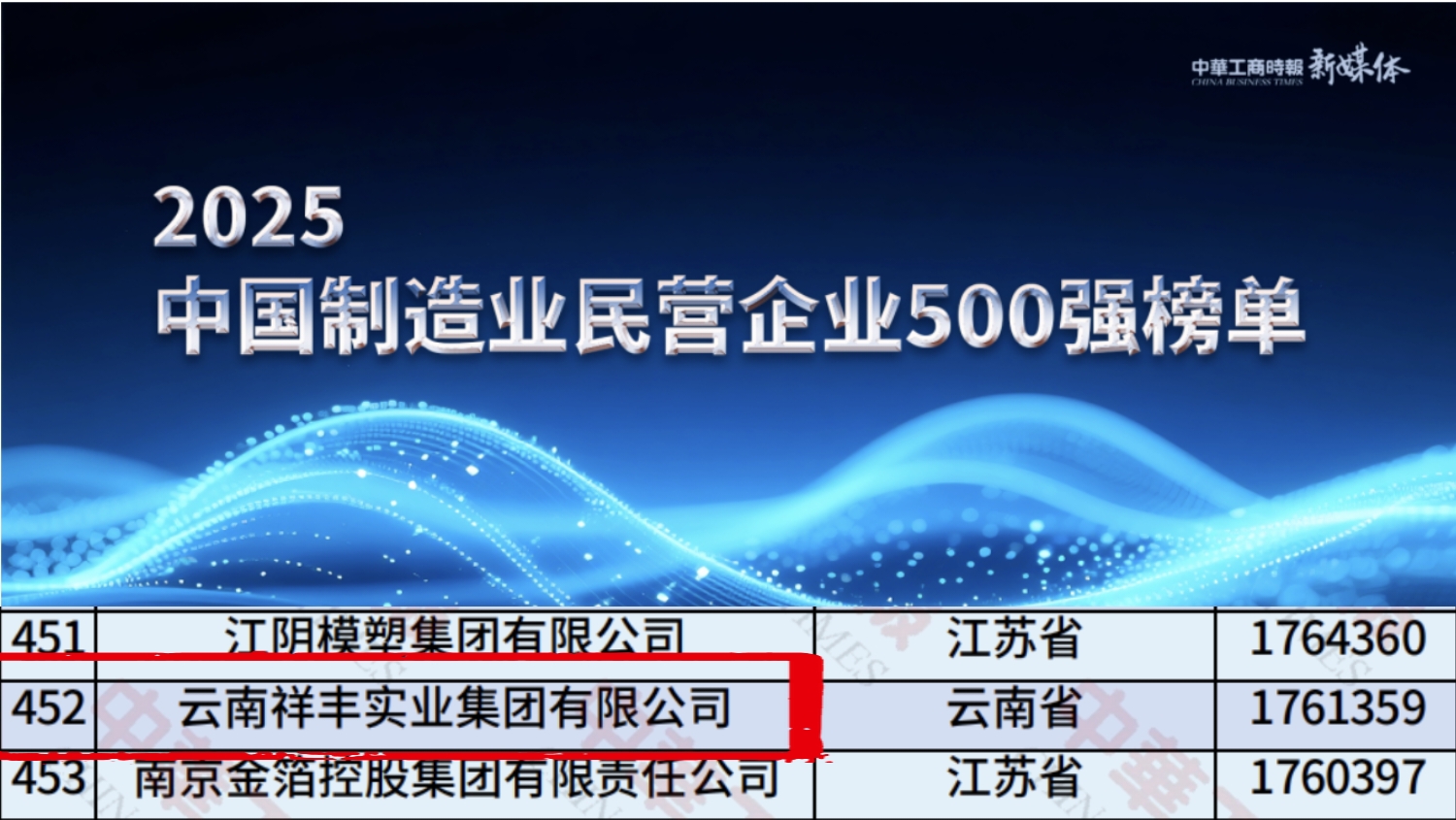 祥豐集團榮登2025中國制造業民營企業500強榜單!位列全國...